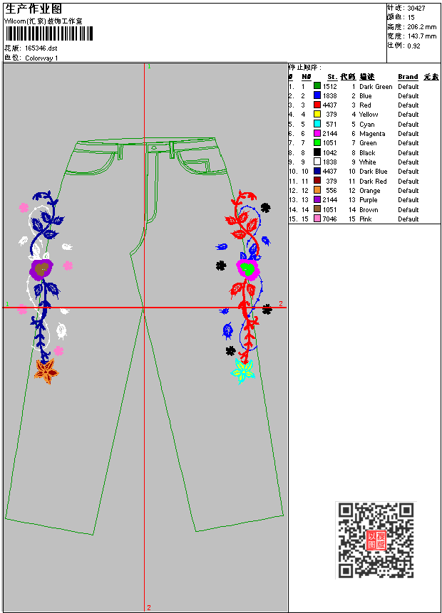 - dst花版参数: 大小:89.64 KB / 尺寸:144*206[毫米] / 针数:30427针 / 线色:15 / 格式:dst / 版本:6
