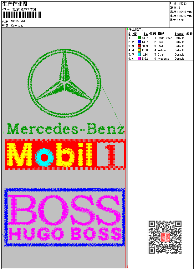 - dst花版参数: 大小:46.56 KB / 尺寸:103*165[毫米] / 针数:15723针 / 线色:6 / 格式:dst / 版本:6