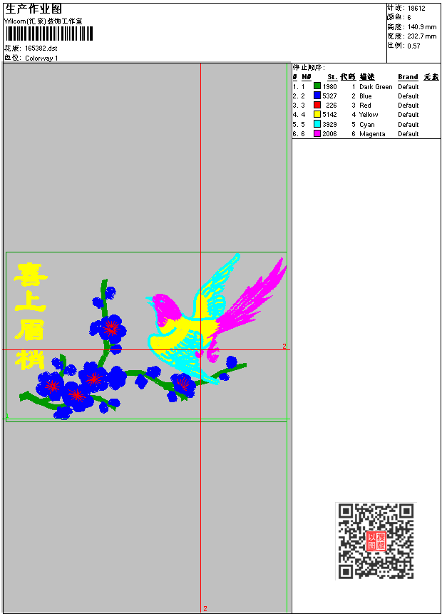 喜上眉梢_机绣仿苏绣,刺绣挂画,刺绣工艺版 点此上传花版兑乐绣币/现金 dst花版参数: 大小:55.03 KB / 尺寸:233*141[毫米] / 针数:18612针 / 线色:6 / 格式:dst / 版本:6 版带文件需绣花软件方可打开,可配色打印导出各种格式或直接上机绣。如无绣花软件可下载1:1模拟效果图。 PNG图片信息:大小:0.3(MB) /图宽*高:881x533(像素) 上传作者( d258*** ) 获得乐绣币:10个 dst下载 1:1图下载 关闭 相似花型推荐: 小丑刺绣图案_电脑图案_花版下载 鸡_公鸡服装图案,电脑刺绣图案下载 花_花瓶电脑图案,图片 刺绣图案甲虫_刺绣甲虫图片 比翼鸟版带,电脑图案,图片 狗_卡通小狗_童装卡通狗版带,刺绣图案 艺术叶子版带,床上用品电脑图案 二龙戏珠刺绣图案_电脑图案_花版下载 菠萝菠萝蜜__EMB格式 休闲裤版带03 休闲裤版带02 休闲裤版带01 休闲裤脚版带 休闲衬衫工艺-02 绵羊刺绣图案_电脑图案_花版下载_EMB原版 上一个花样:骷髅头图案_图,版带,鞋子刺绣图案 下一个花样:小丑刺绣图案_电脑图案_花版下载