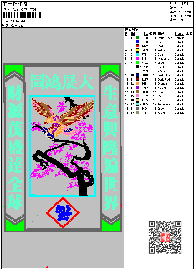 大展鸿图_精品工艺版 点此上传花版兑乐绣币/现金 dst花版参数: 大小:351.39 KB / 尺寸:333*472[毫米] / 针数:119771针 / 线色:19 / 格式:dst / 版本:6 版带文件需绣花软件方可打开,可配色打印导出各种格式或直接上机绣。如无绣花软件可下载1:1模拟效果图。 PNG图片信息:大小:2.1(MB) /图宽*高:1258x1785(像素) 上传作者( 4216*** ) 获得乐绣币:35个 dst下载 1:1图下载 关闭 相似花型推荐: 八仙图_荣华富贵_精品工艺挂画 珠片猫_小猫珠片刺绣图案 凤凰图案 愤怒的小鸟卡通图案 猪头图案_EMB版带 可爱的小兔子图案_EMB格式 贴布熊字母刺绣图案_EMB版带 童装贴布熊图案_EMB格式 童装卡通图案_EMB格式 小花刺绣图案_EMB版带 卡通能刺绣图案大全_卡通能图案 _EMB版带 童装飞行员卡通贴布绣图,版带,刺绣图案_EMB 下摆长条图,版带,刺绣图案_EMB格式 美女_小女孩图案_图_EMB版带 羞涩的爱_电脑十字绣图案刺绣图案_电脑图案 上一个花样:燕子_工艺挂画_工艺版带,刺绣工艺装饰品 下一个花样:八仙图_荣华富贵_精品工艺挂画