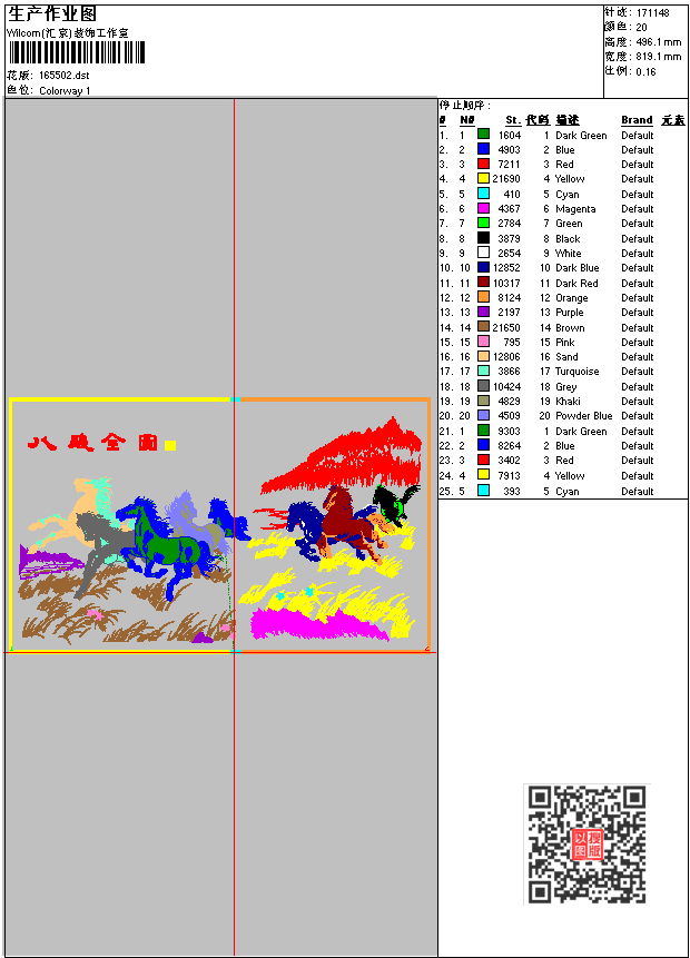 - dst花版参数: 大小:501.91 KB / 尺寸:819*496[毫米] / 针数:171148针 / 线色:20 / 格式:dst / 版本:6
