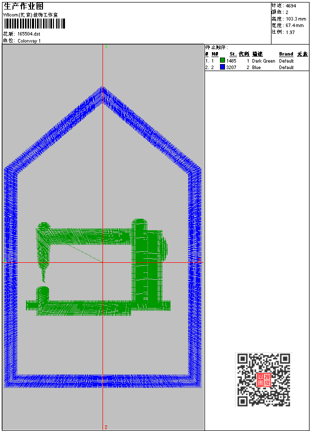 - dst花版参数: 大小:14.25 KB / 尺寸:67*103[毫米] / 针数:4694针 / 线色:2 / 格式:dst / 版本:6