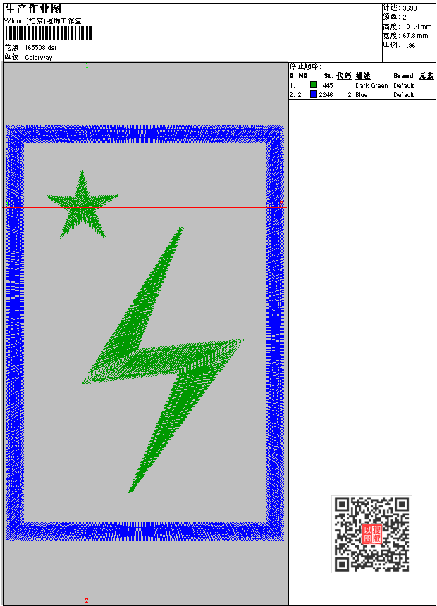 - dst花版参数: 大小:11.32 KB / 尺寸:68*101[毫米] / 针数:3693针 / 线色:2 / 格式:dst / 版本:6