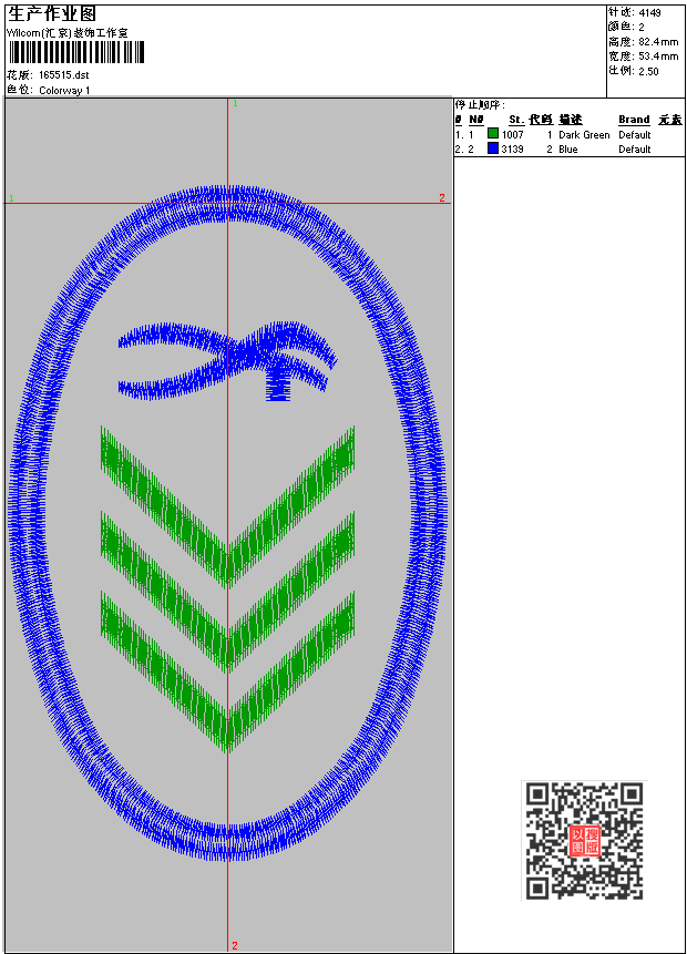 - dst花版参数: 大小:12.66 KB / 尺寸:53*82[毫米] / 针数:4149针 / 线色:2 / 格式:dst / 版本:6
