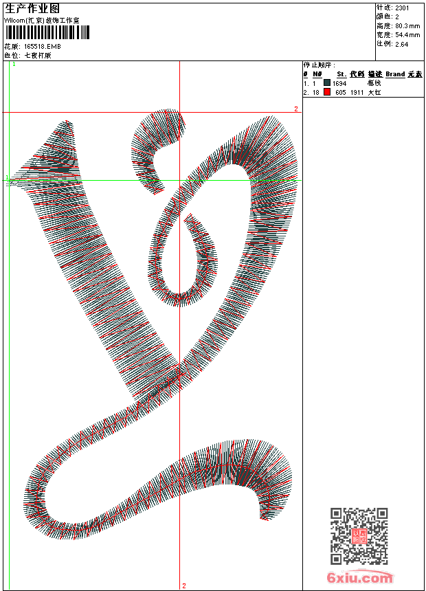 - emb花版参数: 大小:26.00 KB / 尺寸:54*80[毫米] / 针数:2301针 / 线色:2 / 格式:emb / 版本:9