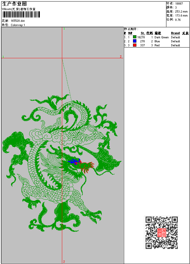 - dst花版参数: 大小:55.83 KB / 尺寸:174*253[毫米] / 针数:18887针 / 线色:3 / 格式:dst / 版本:6