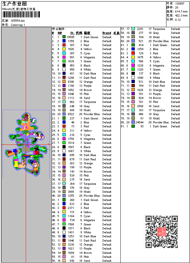 - dst花版参数: 大小:384.28 KB / 尺寸:422*615[毫米] / 针数:130997针 / 线色:20 / 格式:dst / 版本:6