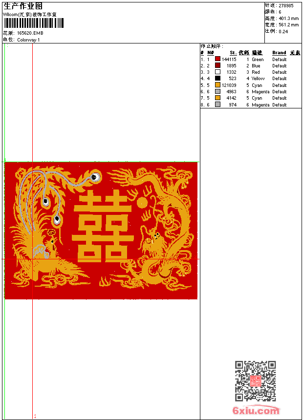 龙凤喜缘乱针绣_乱针绣针法花版_EMB版带 点此上传花版兑乐绣币/现金 emb花版参数: 大小:1.19 MB / 尺寸:561*401[毫米] / 针数:278985针 / 线色:6 / 格式:emb / 版本:9 版带文件需绣花软件方可打开,可配色打印导出各种格式或直接上机绣。如无绣花软件可下载1:1模拟效果图。 PNG图片信息:大小:7.8 (MB) /图宽*高:2123x1518(像素) 上传作者( zhan*** ) 获得乐绣币:10个 emb下载 1:1图下载 关闭 相似花型推荐: 幽香清远_电脑十字绣图案 一鸣惊人_电脑机绣仿手绣挂画 鹰与奋斗_工艺版带,刺绣工艺装饰品 月夜鲤_工艺图案版 月兔_工艺精品版 越女采莲_精品工艺刺绣挂画 枕套版带_玫瑰花_床上用品刺绣图案_EMB原版 龙凤吉祥_汽车坐套刺绣图案_EMB版带 五厘亮片3色公仔 蝴蝶平绣加3厘珠片 米老鼠头_图案_EMB版带 风景刺绣工艺版-夏 工艺版之风景篇-春 风景工艺版-秋 富贵花开_刺绣工艺精品花版 上一个花样:Together_字母标志刺绣图案 下一个花样:幽香清远_电脑十字绣图案