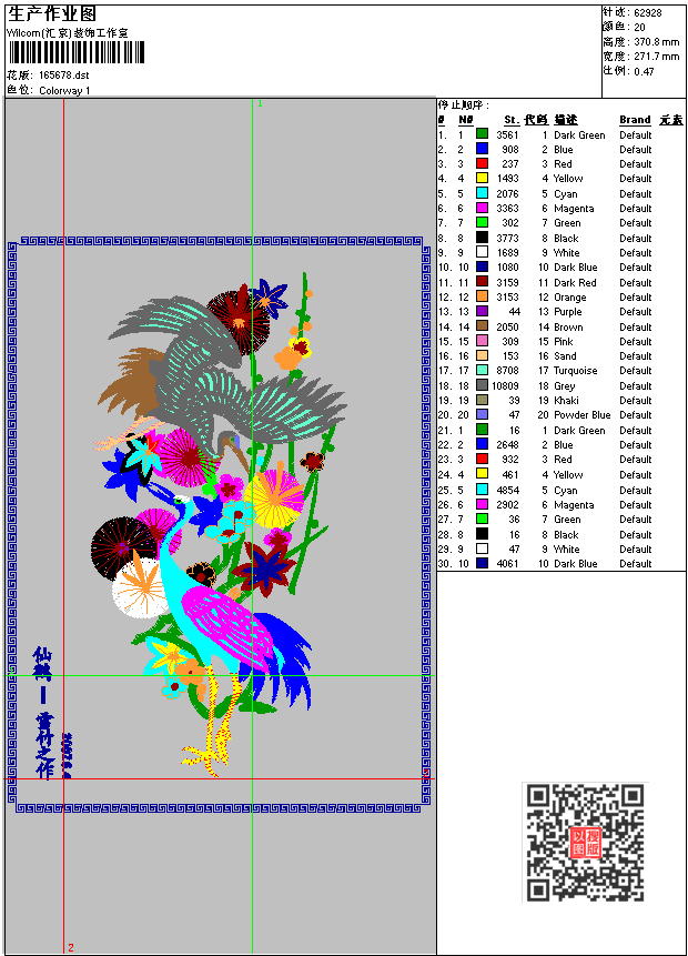 仙鹤电脑工艺,仙鹤刺绣工艺图案 点此上传花版兑乐绣币/现金 dst花版参数: 大小:184.86 KB / 尺寸:272*371[毫米] / 针数:62928针 / 线色:20 / 格式:dst / 版本:6 版带文件需绣花软件方可打开,可配色打印导出各种格式或直接上机绣。如无绣花软件可下载1:1模拟效果图。 PNG图片信息:大小:1.0(MB) /图宽*高:1028x1403(像素) 上传作者( embs*** ) 获得乐绣币:5个 dst下载 1:1图下载 关闭 相似花型推荐: 喜雀_动物工艺版 卡通叮当猫电脑图案_贴布版下载 边曲花_下摆花 蜘蛛花图案大全_花卉图案 两只狗_贴布绣小狗 美丽花_电脑抽像花卉 幸运恋草曲_电脑十字绣_十字绣图 荷花刺绣_刺绣荷花图案 圣诞老人图案_圣诞素材版带 美女图案 乌龟电脑刺绣,电脑刺绣图案,电脑图 牡丹_刺绣牡丹花设计图 魇魔驹_动物工艺刺绣版 小男孩_弹吉它的男孩_刺绣工艺 猫的_毛巾绣图案 上一个花样:凤凰_吉祥凤凰 下一个花样:喜雀_动物工艺版