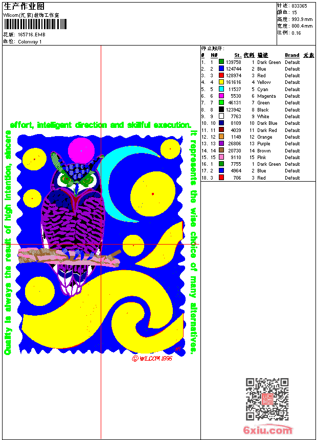 炫彩天空下的猫头鹰,特殊针法_威尔克姆2006emb格式 点此上传花版兑乐绣币/现金 emb花版参数: 大小:1012.00 KB / 尺寸:800*994[毫米] / 针数:833365针 / 线色:15 / 格式:emb / 版本:2006 版带文件需绣花软件方可打开,可配色打印导出各种格式或直接上机绣。如无绣花软件可下载1:1模拟效果图。 PNG图片信息:大小:23.0 (MB) /图宽*高:3028x3760(像素) 上传作者( bufe*** ) 获得乐绣币:30个 emb下载 1:1图下载 关闭 相似花型推荐: 绿光森林,幻彩天空_乱针绣版_威尔克姆2006 炫彩天空特殊针法_威尔克姆2006格式 一帆风顺_特殊针法_威尔克姆2006的emb格式 胸标_刺绣标 _机绣标 机绣胸标_电脑机绣别章胸标 刺绣臂章胸标 胸标_胸标 刺绣胸标_胸标刺绣 球队胸标_FIAT章仔标志 audi胸标_电脑刺绣胸标图案 KAPPA电绣_电脑图案 服装花朵刺绣_EMB版带免费下载 睡衣_hello kitty猫刺绣图案_卡通贴布绣 米奇米老鼠刺绣 睡衣刺绣_贴布小姑娘图 上一个花样:鸟_鸟语花香_电脑机仿手绣工艺版_乱针绣EMB原版 下一个花样:绿光森林,幻彩天空_乱针绣版_威尔克姆2006格式