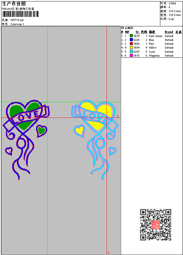 - 版带文件需绣花软件方可打开,可配色打印导出各种格式或直接上机绣。如无绣花软件可下载1:1模拟效果图。