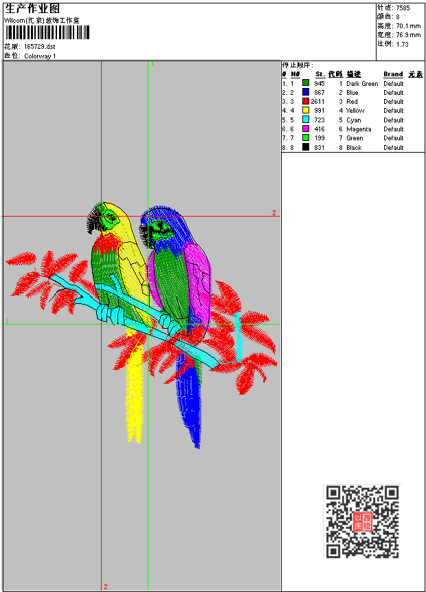 - 版带文件需绣花软件方可打开,可配色打印导出各种格式或直接上机绣。如无绣花软件可下载1:1模拟效果图。