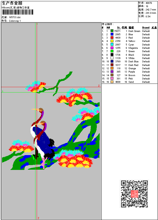 - dst花版参数: 大小:120.25 KB / 尺寸:242*243[毫米] / 针数:40876针 / 线色:16 / 格式:dst / 版本:6