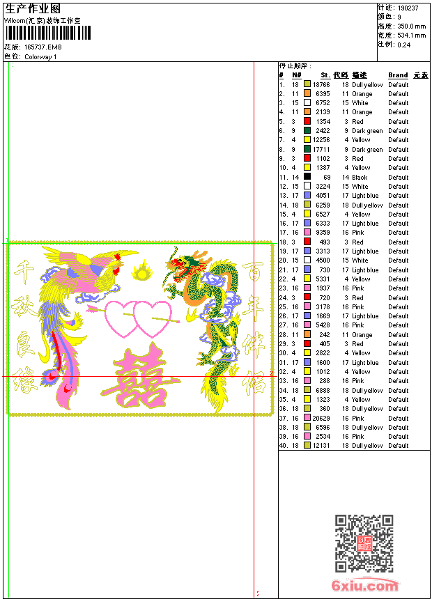 龙凤姻缘_千秋良缘百年伴侣_婚庆刺绣 点此上传花版兑乐绣币/现金 emb花版参数: 大小:467.00 KB / 尺寸:534*350[毫米] / 针数:190237针 / 线色:9 / 格式:emb / 版本:9 版带文件需绣花软件方可打开,可配色打印导出各种格式或直接上机绣。如无绣花软件可下载1:1模拟效果图。 PNG图片信息:大小:2.4 (MB) /图宽*高:2021x1324(像素) 上传作者( xiao*** ) 获得乐绣币:19个 emb下载 1:1图下载 关闭 相似花型推荐: 字母刺绣图案 雄鹰展翅图 仙鹤系列刺绣之三_迎客松工艺版 仙鹤刺绣图案大全_仙鹤系列刺绣之二 仙鹤系列刺绣之一_仙鹤刺绣图案大全 羊_山羊工艺版 十字卉_电脑十字绣_免费版带下载 两只鹦鹉电脑刺绣,电脑图 熊猫_吃竹叶的熊猫图_免费下载 人物系列-周总理_乱针工艺版带 竹报平安工艺挂画,电脑机绣十字绣版 虎系列-竹林猛虎电脑图_工艺花版_EMB原版 八骏奔腾_电脑十字绣_十字绣刺绣图 花卉刺绣 鞋样花朵刺绣图_免费下载 上一个花样:花朵_有渐变效果的刺_EMB版带 下一个花样:字母刺绣图案