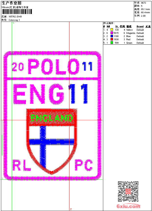 - emb花版参数: 大小:46.50 KB / 尺寸:68*89[毫米] / 针数:9673针 / 线色:5 / 格式:emb / 版本:7
