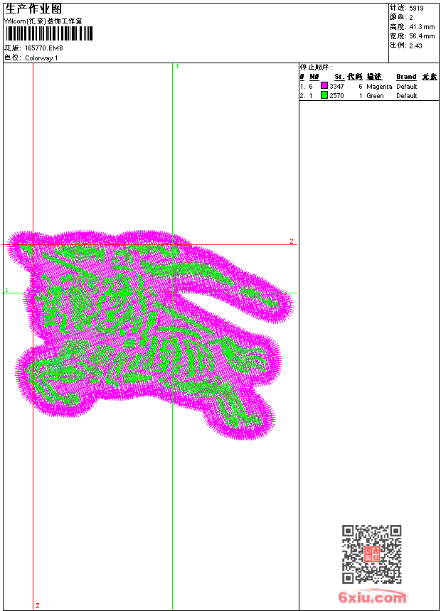 - emb花版参数: 大小:50.50 KB / 尺寸:56*41[毫米] / 针数:5919针 / 线色:2 / 格式:emb / 版本:7