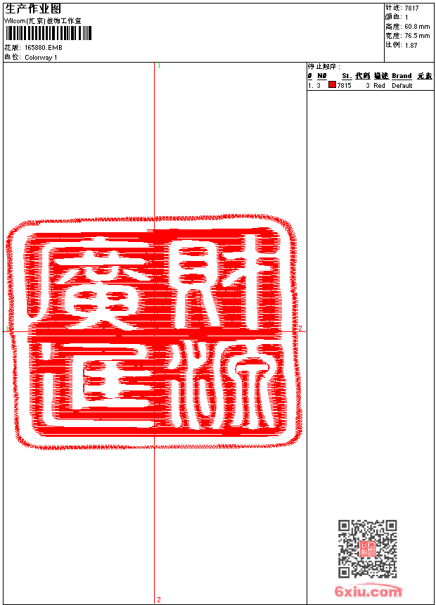 财源广进_吉祥印章pic018 (EMB) 点此上传花版兑乐绣币/现金 emb花版参数: 大小:79.00 KB / 尺寸:76*61[毫米] / 针数:7817针 / 线色:1 / 格式:emb / 版本:9 版带文件需绣花软件方可打开,可配色打印导出各种格式或直接上机绣。如无绣花软件可下载1:1模拟效果图。 PNG图片信息:大小:0.1 (MB) /图宽*高:290x230(像素) 上传作者( embs*** ) 获得乐绣币:50个 emb下载 1:1图下载 关闭 相似花型推荐: 花序刺绣图案_电脑图案_EMB花版免费下载 貓咪_小猫荡秋千刺绣_EMB贴布绣版带 flower _花卉刺绣_EMB版带 cool girl_酷女孩刺绣_美女头像_EMB版带 rabbit_兔子牛仔裤版带_EMB版带 觀音_刺绣 佛_刺绣 eagle_雄鹰刺绣_鹰 凤凰鞋图案自己设计 双喜鞋垫 竹报平安_电脑十字绣_十字绣 梅花 花瓶 多财多福_电脑十字绣_十字绣 flower_抽象花卉刺绣 jeans_牛仔裤刺绣_EMB版带 strawberry_婴儿服装刺绣_EMB版带 上一个花样:电脑工艺品刺绣_华堂春暖_威尔克姆2006版EMB格式 下一个花样:花序刺绣图案_电脑图案_EMB花版免费下载