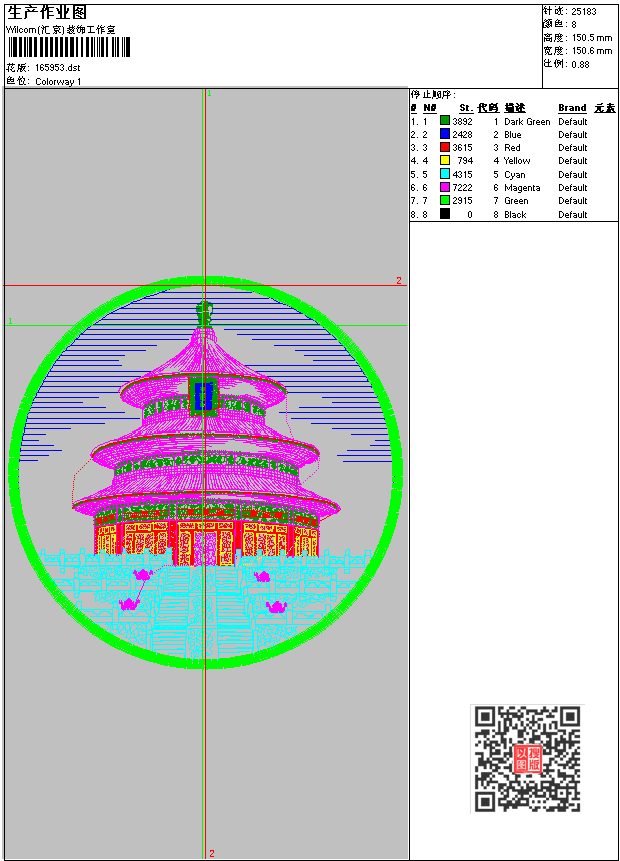 北京天坛电脑,北京天坛刺绣图案 点此上传花版兑乐绣币/现金 dst花版参数: 大小:74.28 KB / 尺寸:151*151[毫米] / 针数:25183针 / 线色:8 / 格式:dst / 版本:6 版带文件需绣花软件方可打开,可配色打印导出各种格式或直接上机绣。如无绣花软件可下载1:1模拟效果图。 PNG图片信息:大小:0.4(MB) /图宽*高:570x570(像素) 上传作者( 绝漠*** ) 获得乐绣币:10个 dst下载 1:1图下载 关闭 相似花型推荐: 鱼_乱针绣鱼的图_刺绣鱼_威尔克姆2006版格式 龙_龙的刺绣图案_电脑龙 旗袍花_旗袍刺绣图案 狮子(章)_狮子标志刺绣_狮子标_Wilcom2006 八仙图_八仙人物电脑,刺绣八仙人物图案 天使的翅膀_情人节刺绣素材 花纹_古典圆形花纹电脑图案_花版下载_EMB版 领花珠片_刺绣亮片衣领_威尔克姆2006版格式 牙刷绣猫头版带,牙刷绣图案_威尔克姆2006版 兔子版带,电脑图案,图片_EMB版带 FISH 3 鱼的刺绣图案 FISH 2 卡通海豚_童装海豚刺绣_EMB原版 花_珠片花_亮片刺绣图 FISH 1 小鱼与大鱼刺绣_EMB版带 cars_卡通汽车刺绣 上一个花样:polo刺绣_polo 下一个花样:鱼_乱针绣鱼的图_刺绣鱼_威尔克姆2006版格式