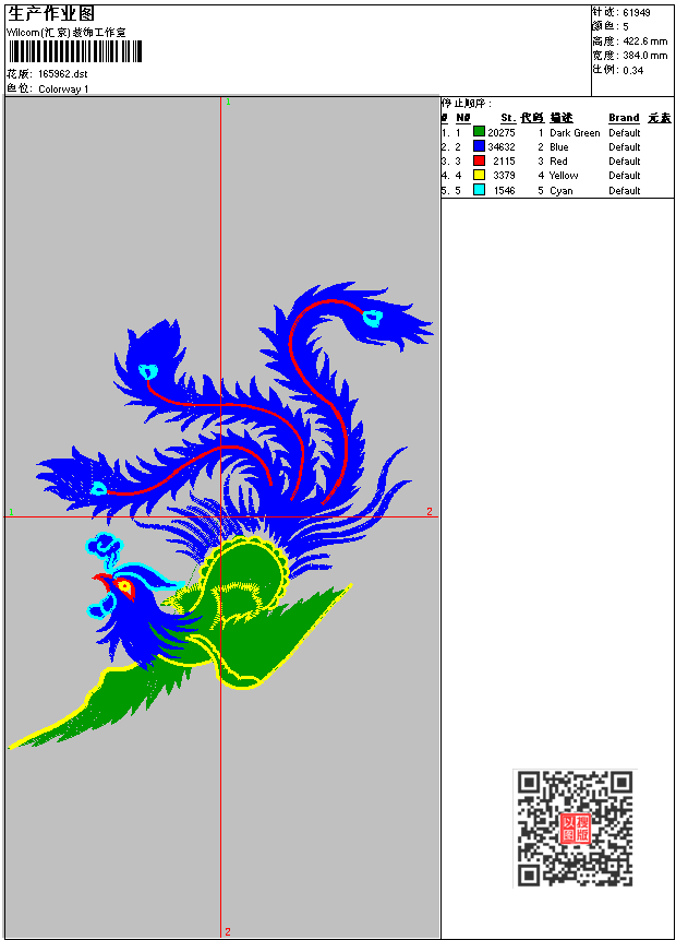 吉祥喜庆飞舞凤凰_适合家纺刺绣 点此上传花版兑乐绣币/现金 dst花版参数: 大小:181.99 KB / 尺寸:384*423[毫米] / 针数:61949针 / 线色:5 / 格式:dst / 版本:6 版带文件需绣花软件方可打开,可配色打印导出各种格式或直接上机绣。如无绣花软件可下载1:1模拟效果图。 PNG图片信息:大小:2.1(MB) /图宽*高:1453x1599(像素) 上传作者( kand*** ) 获得乐绣币:15个 dst下载 1:1图下载 关闭 相似花型推荐: 花卉图案_花卉刺绣图案_EMB原版 鹿-珠片鹿_刺绣鹿 前幅三色亮片绣_威尔克姆2006版格式 前幅亮片绣_珠片绣刺绣图案 威尔克姆2006版 前领双色亮片绣_版带,刺绣图案 威尔克姆20 双色盘带绣_威尔克姆2006版EBM格式 保罗 七色polo_威尔克姆2006版EBM格式 polo刺绣_polo 北京天坛电脑,北京天坛刺绣图案 鱼_乱针绣鱼的图_刺绣鱼_威尔克姆2006版格式 龙_龙的刺绣图案_电脑龙 旗袍花_旗袍刺绣图案 狮子(章)_狮子标志刺绣_狮子标_Wilcom2006 八仙图_八仙人物电脑,刺绣八仙人物图案 天使的翅膀_情人节刺绣素材 上一个花样:喜结良缘_家纺_喜庆刺绣素材 下一个花样:花卉图案_花卉刺绣图案_EMB原版