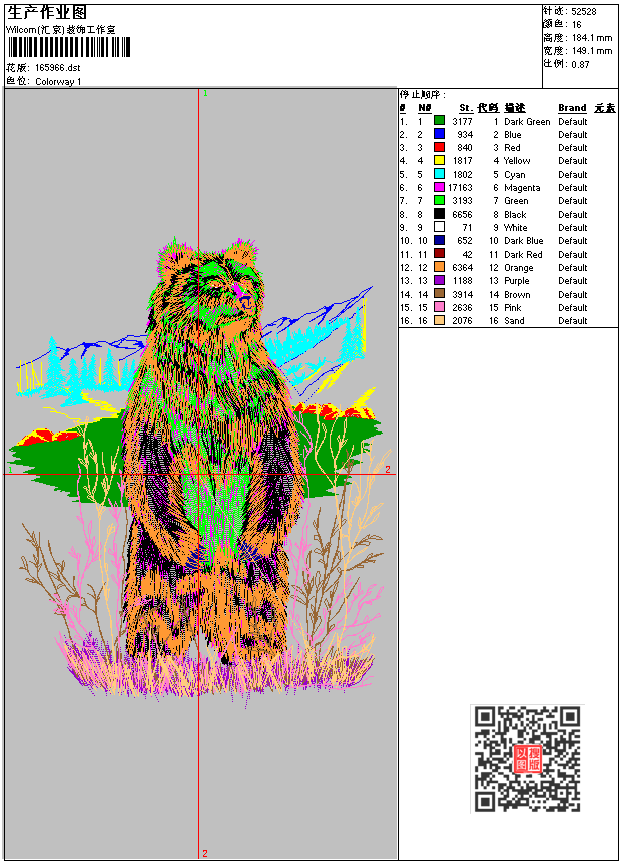 - dst花版参数: 大小:154.39 KB / 尺寸:149*184[毫米] / 针数:52528针 / 线色:16 / 格式:dst / 版本:6