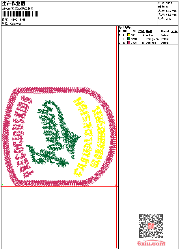 - emb花版参数: 大小:45.50 KB / 尺寸:62*54[毫米] / 针数:5157针 / 线色:3 / 格式:emb / 版本:9