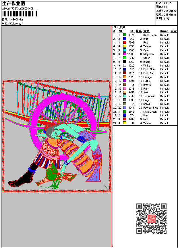 - dst花版参数: 大小:202.97 KB / 尺寸:239*245[毫米] / 针数:69110针 / 线色:20 / 格式:dst / 版本:6