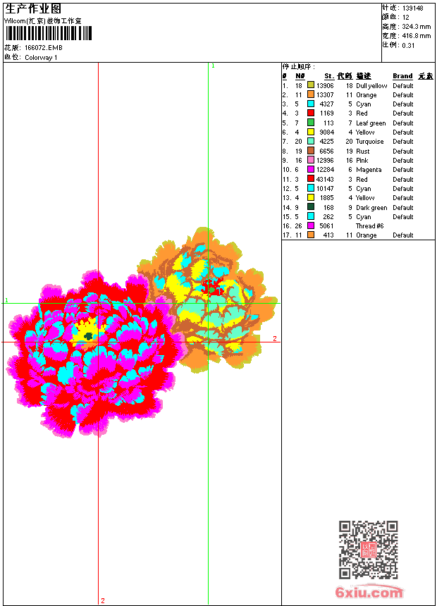牡丹花_电脑牡丹图_牡丹刺绣_威尔克姆2006版格式 点此上传花版兑乐绣币/现金 emb花版参数: 大小:750.00 KB / 尺寸:417*324[毫米] / 针数:139148针 / 线色:12 / 格式:emb / 版本:2006 版带文件需绣花软件方可打开,可配色打印导出各种格式或直接上机绣。如无绣花软件可下载1:1模拟效果图。 PNG图片信息:大小:2.6 (MB) /图宽*高:1577x1227(像素) 上传作者( wwe3*** ) 获得乐绣币:15个 emb下载 1:1图下载 关闭 相似花型推荐: 大熊_卡通熊刺绣_熊卡通 polo 肩领 威尔克姆2006版EBM格式 马_马头_马与英文的刺绣图案 happy_字母刺绣版带下载_EMB格式 花卉_吉祥圆形花纹刺绣_EMB版带 圣诞英文图,版带,EMB刺绣图案 杯垫_杯垫电脑,杯垫刺绣图案_EMB原版 圣诞老人_圣诞刺绣图_圣诞节素材_EMB版带 角隅版带_角隅花电脑,角隅花刺绣图案_EMB版 花车_花车_花车刺绣图案_威尔克姆2006版EBM 遥远的梦_刺绣工艺版_精品挂画 宗教与和平电脑刺绣图案,电脑工艺版_威尔克 古老的花园_工艺图案_刺绣工艺挂画 奔驰的彗星版带,刺绣图案_EMB版带 毛毛虫 上一个花样:鹰 哈雷 后背 威尔克姆2006版EBM格式 下一个花样:大熊_卡通熊刺绣_熊卡通