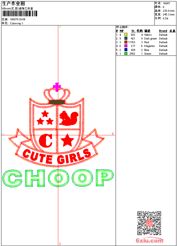 - emb花版参数: 大小:82.00 KB / 尺寸:245*230[毫米] / 针数:16007针 / 线色:6 / 格式:emb / 版本:9