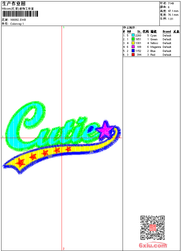 - emb花版参数: 大小:224.50 KB / 尺寸:76*47[毫米] / 针数:7149针 / 线色:6 / 格式:emb / 版本:9