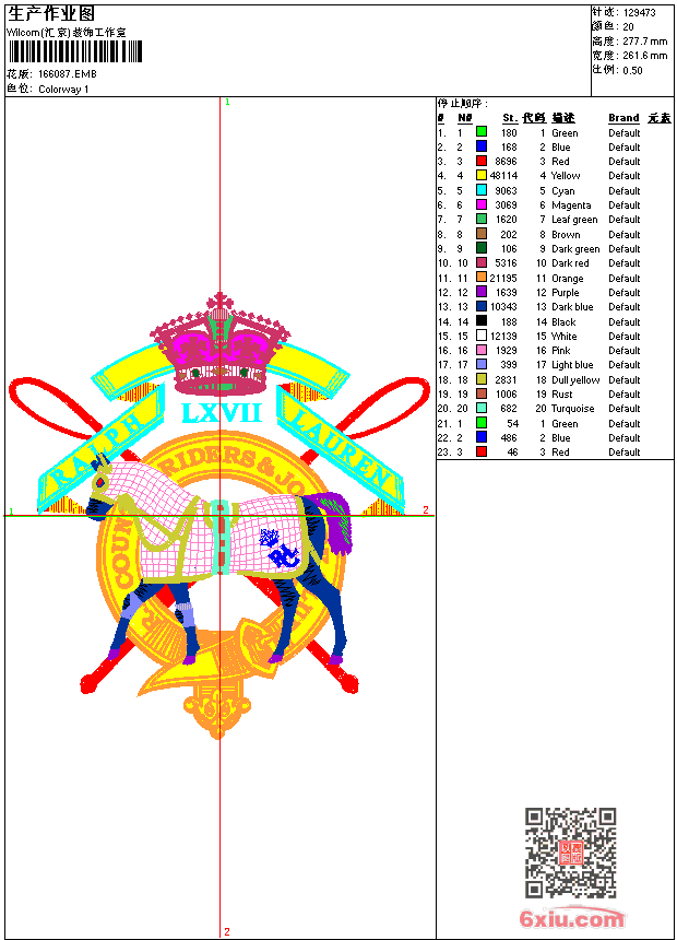 - emb花版参数: 大小:360.50 KB / 尺寸:262*278[毫米] / 针数:129473针 / 线色:20 / 格式:emb / 版本:2006
