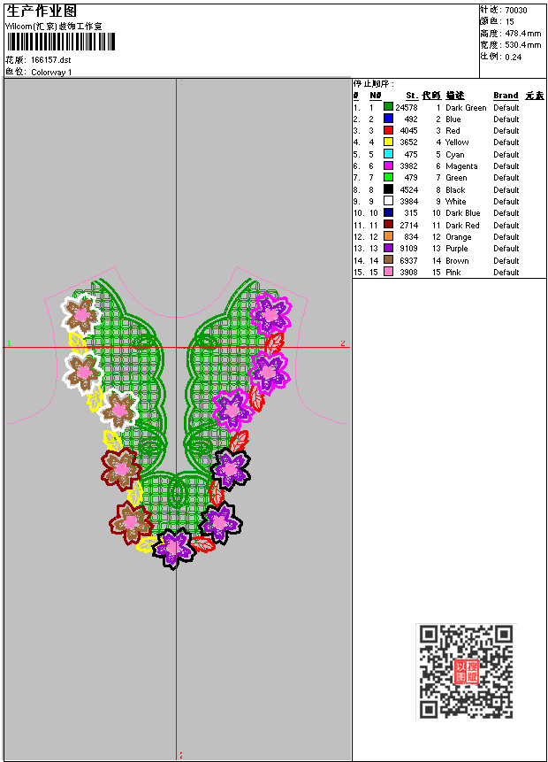- dst花版参数: 大小:205.67 KB / 尺寸:530*478[毫米] / 针数:70030针 / 线色:15 / 格式:dst / 版本:6
