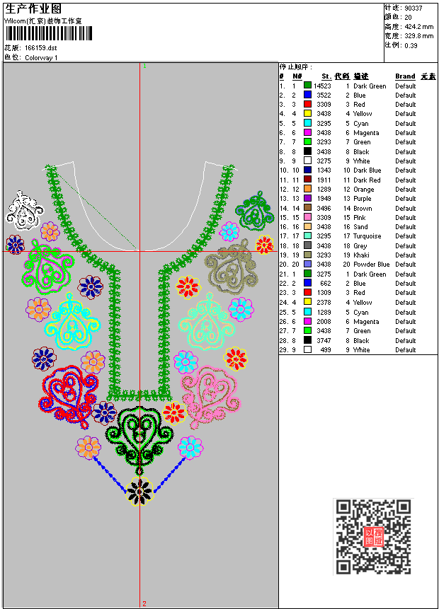 - dst花版参数: 大小:265.16 KB / 尺寸:330*424[毫米] / 针数:90337针 / 线色:20 / 格式:dst / 版本:6