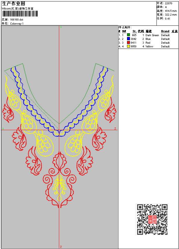 - dst花版参数: 大小:65.16 KB / 尺寸:322*415[毫米] / 针数:22070针 / 线色:4 / 格式:dst / 版本:6