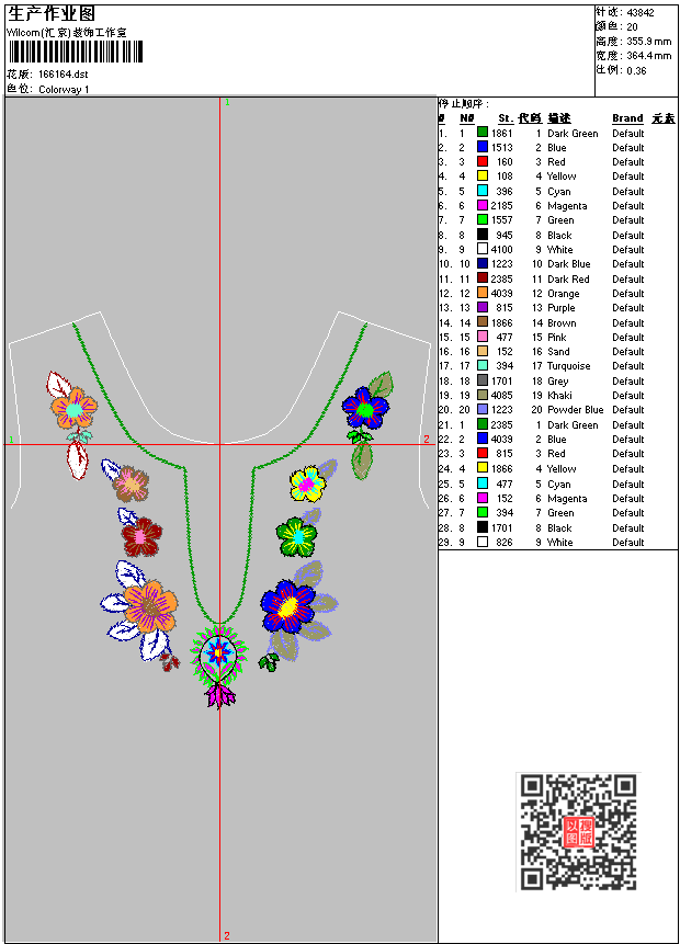 - dst花版参数: 大小:128.94 KB / 尺寸:364*356[毫米] / 针数:43842针 / 线色:20 / 格式:dst / 版本:6