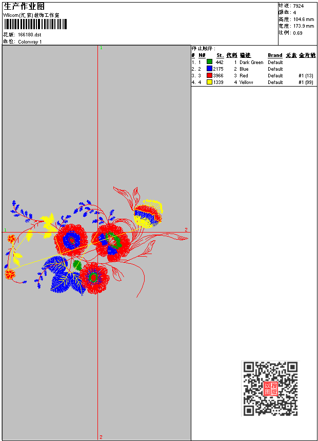 - dst花版参数: 大小:23.72 KB / 尺寸:174*105[毫米] / 针数:7924针 / 线色:4 / 格式:dst / 版本:6