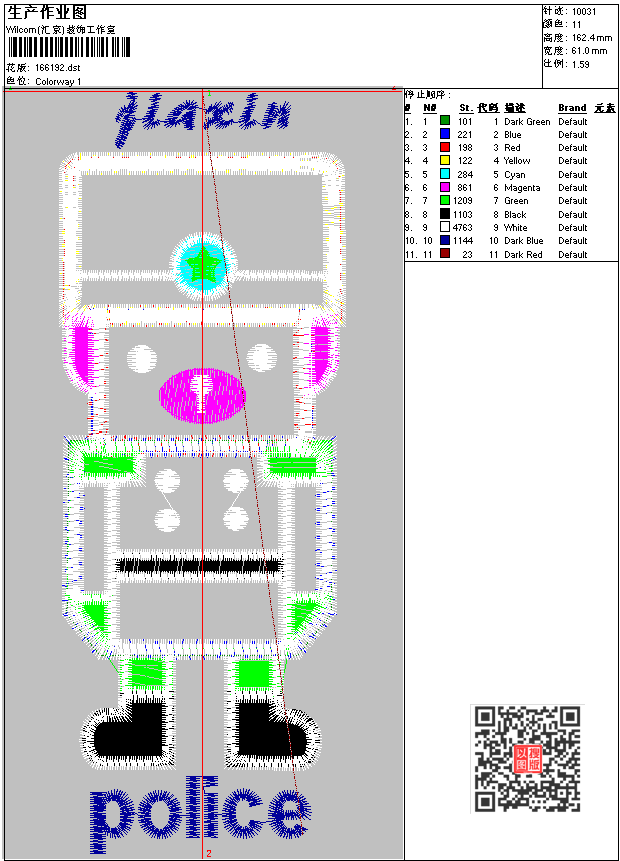 警察police_热水袋图 点此上传花版兑乐绣币/现金 dst花版参数: 大小:29.89 KB / 尺寸:61*162[毫米] / 针数:10031针 / 线色:11 / 格式:dst / 版本:6 版带文件需绣花软件方可打开,可配色打印导出各种格式或直接上机绣。如无绣花软件可下载1:1模拟效果图。 PNG图片信息:大小:0.1(MB) /图宽*高:231x615(像素) 上传作者( hxga*** ) 获得乐绣币:2个 dst下载 1:1图下载 关闭 相似花型推荐: 女孩star girl_电暖宝 刺绣 多啦A梦_暖手袋_卡通刺绣 KT猫_电热水袋 暖手宝 热水袋绒布 灰熊_电暖袋卡通刺绣 男蘑菇_暖保袋刺绣 女蘑菇_暖保套 田蛙_电暖保套刺绣 童公仔头版带50002_童装兔子头 童装前幅版带50001 最新时装版带10024 最新时尚时装版带10023 时装版带10022 最新时尚时装下摆版带10021 最新时尚时装版带10020 最新时尚时装版带10019 上一个花样:精美简洁家纺版带 下一个花样:女孩star girl_电暖宝 刺绣