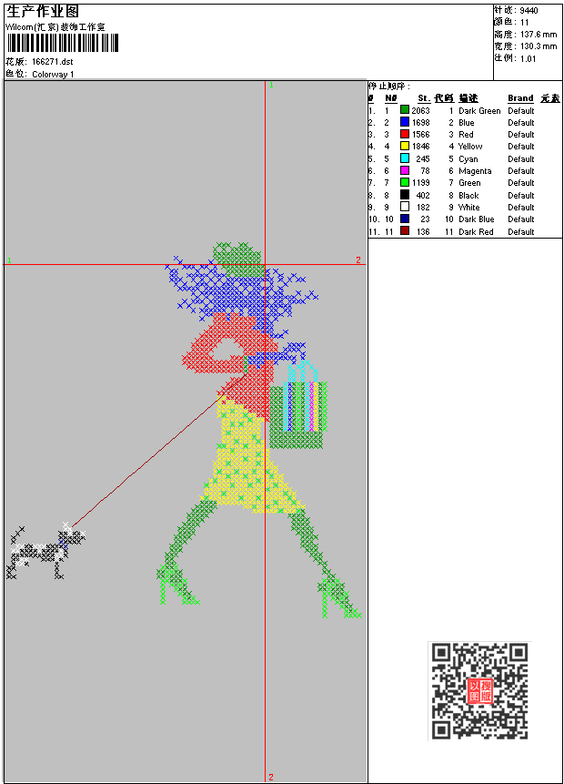 - dst花版参数: 大小:28.16 KB / 尺寸:130*138[毫米] / 针数:9440针 / 线色:11 / 格式:dst / 版本:6
