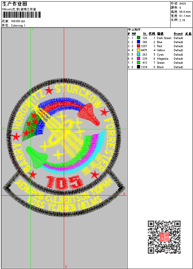 童装章仔版带0009 点此上传花版兑乐绣币/现金 dst花版参数: 大小:25.17 KB / 尺寸:61*69[毫米] / 针数:8419针 / 线色:8 / 格式:dst / 版本:6 版带文件需绣花软件方可打开,可配色打印导出各种格式或直接上机绣。如无绣花软件可下载1:1模拟效果图。 PNG图片信息:大小:0.1(MB) /图宽*高:232x260(像素) 上传作者( myhx*** ) 获得乐绣币:15个 dst下载 1:1图下载 关闭 相似花型推荐: 童装章仔版带0008 童装章仔版带0007 童装章仔版带0006 童装章仔版带0005 童装章仔版带0003 童装章仔版带0002 童装章仔版带0001 镜花 本人所打的珠片 莫生气_书法刺绣挂画 前胸对称花(棉线)_EMB格式 前胸对称花刺绣图案,电脑图 仿手绣15色平_威尔克姆2006版格式 前幅12mm双色偏孔亮片绣_Wilcom2006版格式 前领双色盘带绣_Wilcom2006版EMB格式 上一个花样:童装章仔版带0010 下一个花样:童装章仔版带0008