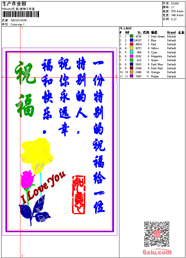 祝福_汉字工艺版 点此上传花版兑乐绣币/现金 emb花版参数: 大小:184.00 KB / 尺寸:348*570[毫米] / 针数:63309针 / 线色:11 / 格式:emb / 版本:9 版带文件需绣花软件方可打开,可配色打印导出各种格式或直接上机绣。如无绣花软件可下载1:1模拟效果图。 PNG图片信息:大小:1.4 (MB) /图宽*高:1318x2158(像素) 上传作者( 杨勇*** ) 获得乐绣币:20个 emb下载 1:1图下载 关闭 相似花型推荐: 少数民族_十字绣图_复杂地毯十字绣 衣领水溶版带_水溶刺绣_EMB原版 刺绣龙_龙的图案 鹿_动物刺绣_卡通_EMB格式 童装章仔版带0020 童装章仔版带0019 童装章仔版带0018 童装章仔版带0017 童装章仔版带0016 童装章仔版带0015 童装章仔版带0014 童装章仔版带0013 童装章仔版带0012 童装章仔版带0011 童装章仔版带0010 上一个花样:难得糊涂_文字工艺刺绣挂画 下一个花样:少数民族_十字绣图_复杂地毯十字绣