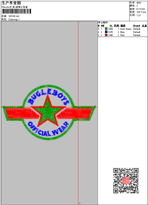 童装章仔版带0021 点此上传花版兑乐绣币/现金 dst花版参数: 大小:14.25 KB / 尺寸:105*62[毫米] / 针数:4693针 / 线色:3 / 格式:dst / 版本:6 版带文件需绣花软件方可打开,可配色打印导出各种格式或直接上机绣。如无绣花软件可下载1:1模拟效果图。 PNG图片信息:大小:0.1(MB) /图宽*高:397x234(像素) 上传作者( myhx*** ) 获得乐绣币:15个 dst下载 1:1图下载 关闭 相似花型推荐: 梅花-小鸟_电脑刺绣图_EMB版带 横竖条 领花_荷花衣领刺绣图_EMB版带 观音菩萨_新版观音刺绣工艺挂画 忍_忍字版_忍字工艺刺绣版 莫生气_诗词文字刺绣挂画 马到功成_刺绣工艺精品版_挂画 财神到_工艺挂画,电脑机绣版带版 关公_关羽_电脑挂画_刺绣作品 成年老友_工艺精品刺绣_小和尚刺绣图 新版猛虎下山刺绣工艺版 如来佛祖_工艺图案_刺绣精品挂画 难得糊涂_文字工艺刺绣挂画 祝福_汉字工艺版 少数民族_十字绣图_复杂地毯十字绣 上一个花样:童装章仔版带0022 下一个花样:梅花-小鸟_电脑刺绣图_EMB版带