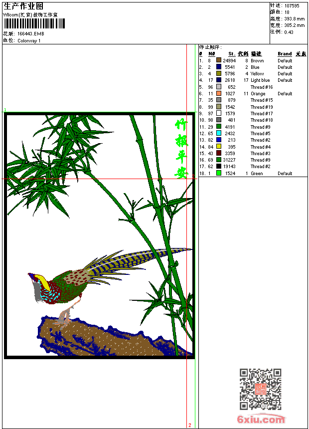 锦鸡_竹报平安_刺绣工艺挂画_EMB原版 点此上传花版兑乐绣币/现金 emb花版参数: 大小:744.50 KB / 尺寸:305*394[毫米] / 针数:107597针 / 线色:18 / 格式:emb / 版本:9 版带文件需绣花软件方可打开,可配色打印导出各种格式或直接上机绣。如无绣花软件可下载1:1模拟效果图。 PNG图片信息:大小:1.5 (MB) /图宽*高:1155x1490(像素) 上传作者( wlxh*** ) 获得乐绣币:30个 emb下载 1:1图下载 关闭 相似花型推荐: 花朵_简单版带刺绣_EMB版带 汽车_椰树卡通刺绣 荷花鸟_工艺刺绣精品花版_EMB原版 H0002 前胸刺绣大花 小花_版带刺绣 rudsak_牛头刺绣标志_威尔克姆2006版格式 龙凤呈祥_吉祥刺绣_喜庆图 字母LOGO刺绣_EMB原版 第二次大格子刺绣 芦苇深处-苇海精灵_乱针绣刺绣工艺精品_EMB 芦苇_乱针绣_风景刺绣工艺版_EMB原版 刺绣龙_龙的图_EMB格式 章仔刺绣龙版带0060 标章仔版带0059 童装圆形章仔刺绣版带0058 上一个花样:马到成功_刺绣卡通_贴布绣_EMB版带 下一个花样:花朵_简单版带刺绣_EMB版带