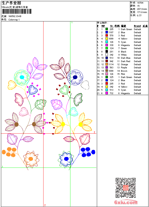 红花绿叶,刺绣图案 点此上传花版兑乐绣币/现金 emb花版参数: 大小:67.00 KB / 尺寸:172*208[毫米] / 针数:10704针 / 线色:15 / 格式:emb / 版本:7 版带文件需绣花软件方可打开,可配色打印导出各种格式或直接上机绣。如无绣花软件可下载1:1模拟效果图。 PNG图片信息:大小:0.3 (MB) /图宽*高:650x787(像素) 上传作者( scql*** ) 获得乐绣币:1个 emb下载 1:1图下载 关闭 相似花型推荐: 花朵_花朵刺绣图案 蝴蝶版带,刺绣图案 奔跑-标志LOGO刺绣 米老鼠,米老鼠,米老鼠刺绣图案 小花朵版带,刺绣图案 荷花,荷花电脑,荷花刺绣图案 米老奇_米老鼠刺绣图 汽车卡通形象刺绣_贴布绣__EMB版带 稻花_麦穗标志刺绣图_EMB版带 圆章仔_圆形章仔版带下载 美国旗版带_EMB原版 小熊卡通刺绣_EMB原版 牡丹长花_横竖条刺绣_EMB版带 蝴蝶_长条花型_EMB原版 可爱的小动物_EMB原版 上一个花样:小鸭,卡通小鸭刺绣图案 下一个花样:花朵_花朵刺绣图案