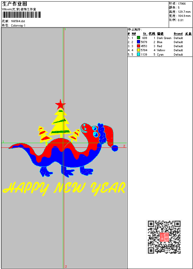 新年快乐 0905_新年祝福图 点此上传花版兑乐绣币/现金 dst花版参数: 大小:53.14 KB / 尺寸:165*130[毫米] / 针数:17966针 / 线色:5 / 格式:dst / 版本:6 版带文件需绣花软件方可打开,可配色打印导出各种格式或直接上机绣。如无绣花软件可下载1:1模拟效果图。 PNG图片信息:大小:0.2(MB) /图宽*高:624x491(像素) 上传作者( embs*** ) 获得乐绣币:3个 dst下载 1:1图下载 关闭 相似花型推荐: 龙年大吉 0904_吉祥贺年刺绣图 福 0903_灯笼福字刺绣 2012 龙 凤尾_花版下载 花纹_衣领形葡萄刺绣图_EMB版带 很美的花边 很美的黄色花图案_花版下载 心形_贴布刺绣小狗_EMB版带 笑脸图案_笑脸刺绣图案_EMB版带 飞机章仔刺绣_EMB原版 骷髅头_EMB刺绣版带 小白兔_卡通爱心形小兔刺绣_贴布绣EMB版带 牡丹图案_牡丹_EMB版带 花_刺卉_EMB版带 刺绣玫瑰花_EMB原版 上一个花样:圣诞 16031_树叶刺绣 下一个花样:龙年大吉 0904_吉祥贺年刺绣图