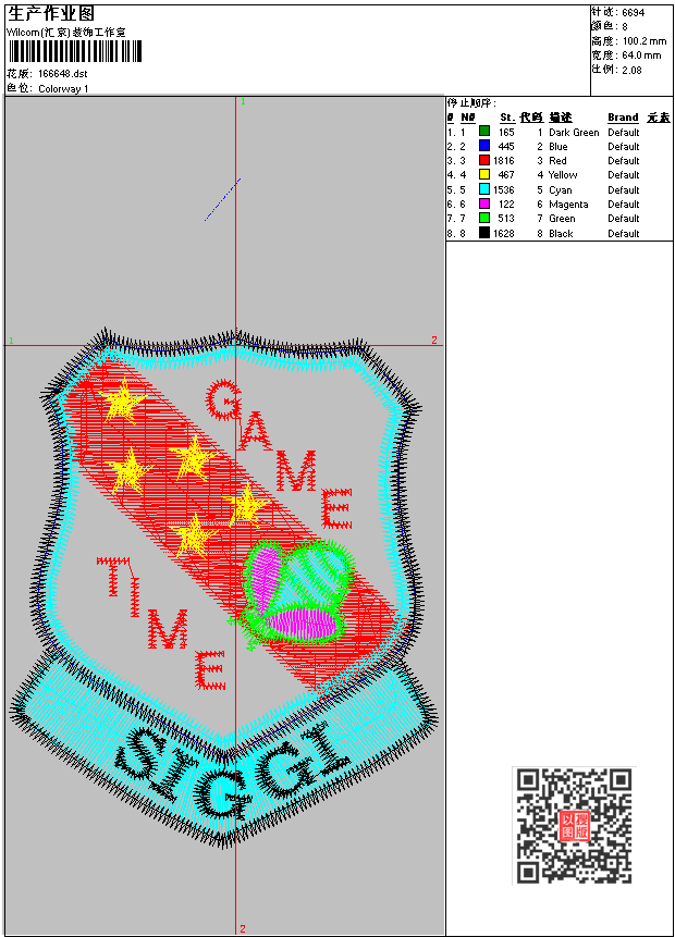 - dst花版参数: 大小:20.11 KB / 尺寸:64*100[毫米] / 针数:6694针 / 线色:8 / 格式:dst / 版本:6