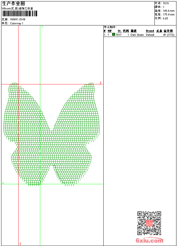 蝴蝶珠片_蝴蝶亮片刺绣 点此上传花版兑乐绣币/现金 emb花版参数: 大小:432.50 KB / 尺寸:176*189[毫米] / 针数:7019针 / 线色:1 / 格式:emb / 版本:2006 版带文件需绣花软件方可打开,可配色打印导出各种格式或直接上机绣。如无绣花软件可下载1:1模拟效果图。 PNG图片信息:大小:0.1 (MB) /图宽*高:666x714(像素) 上传作者( 4593*** ) 获得乐绣币:20个 emb下载 1:1图下载 关闭 相似花型推荐: LOGO_对印花的刺绣LOGO 章仔_字母章仔刺绣 孔雀_刺绣孔雀 章仔_火炬图 人头_单色 水溶花边_匹边水溶刺绣 长条花边刺绣_匹边 ebery_英文字母 名人头像_名人头像刺绣 狼头_狼头刀标志刺绣 狗狗_单色小狗刺绣图 鳄鱼_鳄鱼标志刺绣 枕花_床上用品版带刺绣 小女孩_卡通女孩与白鹤图 花朵_含苞欲放的玫瑰花 上一个花样:童装版带0091_小孩头章仔 下一个花样:LOGO_对印花的刺绣LOGO
