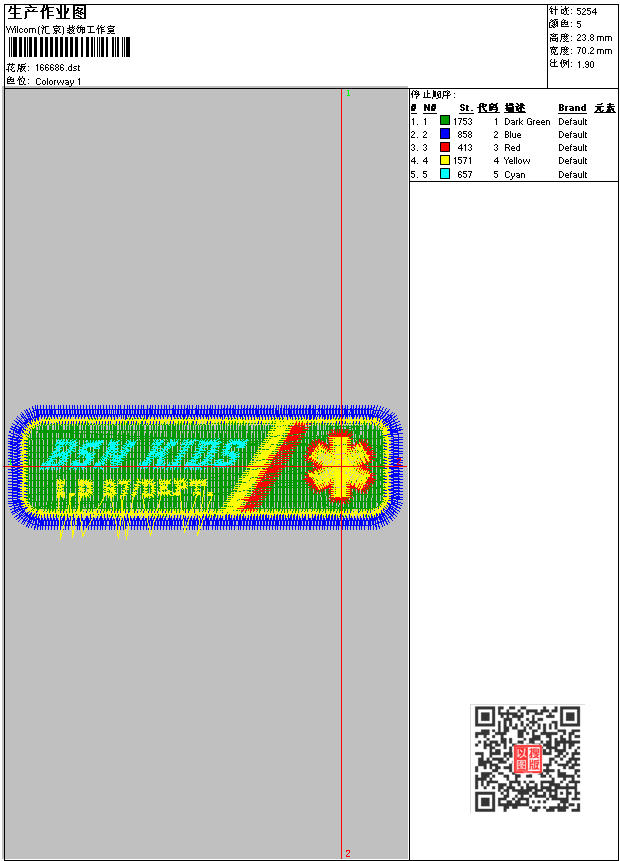 童装版带0095_刺绣LOGO 点此上传花版兑乐绣币/现金 dst花版参数: 大小:15.89 KB / 尺寸:70*24[毫米] / 针数:5254针 / 线色:5 / 格式:dst / 版本:6 版带文件需绣花软件方可打开,可配色打印导出各种格式或直接上机绣。如无绣花软件可下载1:1模拟效果图。 PNG图片信息:大小:0.1(MB) /图宽*高:266x91(像素) 上传作者( myhx*** ) 获得乐绣币:15个 dst下载 1:1图下载 关闭 相似花型推荐: 童装版带0094_小小章仔 童装版带0093_童装章仔刺绣 童装版带0092_M字母章仔 童装版带0091_小孩头章仔 蝴蝶珠片_蝴蝶亮片刺绣 LOGO_对印花的刺绣LOGO 章仔_字母章仔刺绣 孔雀_刺绣孔雀 章仔_火炬图 人头_单色 水溶花边_匹边水溶刺绣 长条花边刺绣_匹边 ebery_英文字母 名人头像_名人头像刺绣 狼头_狼头刀标志刺绣 上一个花样:童装版带0096_数字87章仔 下一个花样:童装版带0094_小小章仔