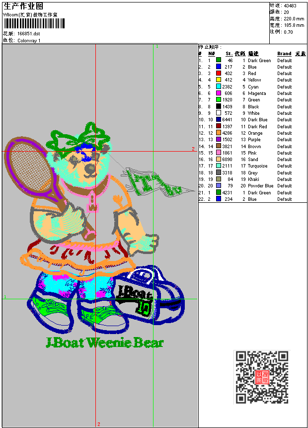 熊博士2_拿着球拍的熊卡通刺绣 点此上传花版兑乐绣币/现金 dst花版参数: 大小:127.89 KB / 尺寸:186*220[毫米] / 针数:43483针 / 线色:20 / 格式:dst / 版本:6 版带文件需绣花软件方可打开,可配色打印导出各种格式或直接上机绣。如无绣花软件可下载1:1模拟效果图。 PNG图片信息:大小:0.6(MB) /图宽*高:703x833(像素) 上传作者( 美美*** ) 获得乐绣币:20个 dst下载 1:1图下载 关闭 相似花型推荐: 熊博士1_卡通熊_卡通刺绣 鳳凰_吉祥凤凰刺绣 鳥._牛仔裤_鸟与花卉 臉譜_牛仔裤脚刺绣脸谱图 水溶花边 L1372_鞋垫图_十字绣鞋垫 镶钻_珠片 图标 米老鼠_卡通 喜洋洋_童装卡通刺绣 美洋洋_卡通形象 版带6_米老鼠与唐老鸭刺绣 版带5_猫和老鼠卡通 版带4_卡通_老鼠刺绣图 版带3_杰瑞鼠卡通刺绣 上一个花样:熊博士3_卡通熊 下一个花样:熊博士1_卡通熊_卡通刺绣