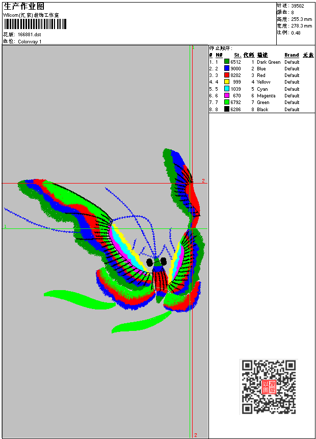 蝴蝶,蝴蝶版带 点此上传花版兑乐绣币/现金 dst花版参数: 大小:116.23 KB / 尺寸:278*255[毫米] / 针数:39502针 / 线色:8 / 格式:dst / 版本:6 版带文件需绣花软件方可打开,可配色打印导出各种格式或直接上机绣。如无绣花软件可下载1:1模拟效果图。 PNG图片信息:大小:0.8(MB) /图宽*高:1053x966(像素) 上传作者( 美美*** ) 获得乐绣币:20个 dst下载 1:1图下载 关闭 相似花型推荐: 蝴蝶2,蝴蝶刺绣图案 蝴蝶3_蝴蝶版带下载_贴布绣 卡通女孩 愤怒的小鸟_卡通 愤怒的小鸟2_刺绣贴布卡通 幛子_章仔 观音大士_刺绣工艺版带 望子成龙_工艺刺绣版 爱情_文字龙凤吉祥工艺刺版 牛仔版带_裤袋珠片版带 蜜蜂-珠片-卡通亮片刺绣 含苞待放_花卉刺绣 牡丹 凤凰_凤凰_凤凰刺绣 蝴蝶-亮片绣 上一个花样:羽毛 下一个花样:蝴蝶2,蝴蝶刺绣图案