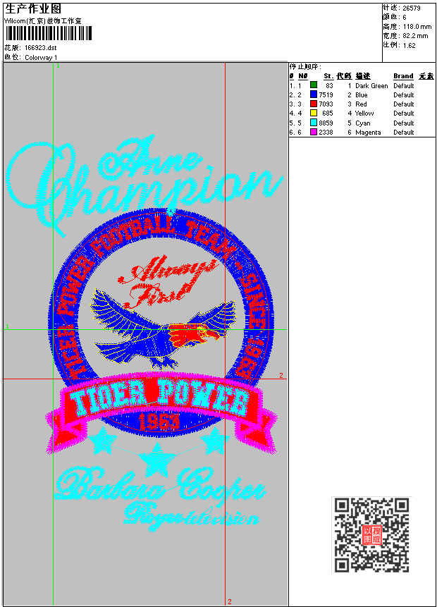 老鹰圆形标志刺绣 点此上传花版兑乐绣币/现金 dst花版参数: 大小:78.37 KB / 尺寸:82*118[毫米] / 针数:26579针 / 线色:6 / 格式:dst / 版本:6 版带文件需绣花软件方可打开,可配色打印导出各种格式或直接上机绣。如无绣花软件可下载1:1模拟效果图。 PNG图片信息:大小:0.2(MB) /图宽*高:311x447(像素) 上传作者( 美美*** ) 获得乐绣币:15个 dst下载 1:1图下载 关闭 相似花型推荐: 翅膀标志刺绣 电脑字母图案_字母刺绣图案 字母标志刺绣 鹰_刺绣鹰 章仔 腾龙_龙纹 麒麟2_麒麟电脑,麒麟刺绣图案 麒麟_喷火龙刺绣图 狼头电脑,狼头刺绣图案 工艺花带_恭贺新禧_刺绣祝福挂画 八仙庆寿_工艺刺绣版 polo6 polo5 polo4 polo3 上一个花样:章仔 下一个花样:翅膀标志刺绣