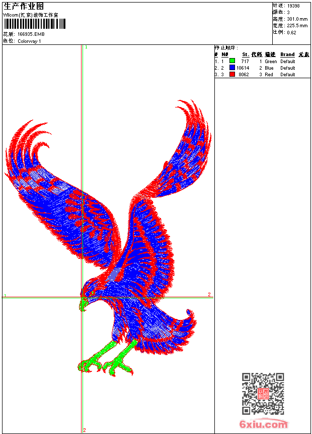雄鹰展翅 点此上传花版兑乐绣币/现金 emb花版参数: 大小:136.50 KB / 尺寸:226*301[毫米] / 针数:19398针 / 线色:3 / 格式:emb / 版本:9 版带文件需绣花软件方可打开,可配色打印导出各种格式或直接上机绣。如无绣花软件可下载1:1模拟效果图。 PNG图片信息:大小:0.8 (MB) /图宽*高:853x1139(像素) 上传作者( 老虎*** ) 获得乐绣币:15个 emb下载 1:1图下载 关闭 相似花型推荐: 卡通刺绣-童装卡通 counties power_标志电脑刺绣 cnutlests_LOGO刺绣标志 huntly_标 友情可贵_刺绣工艺挂画 招财进宝_工艺版 A7_运动标志 A6_运动刺绣标志 A5_LOGO A4_马的标 章仔 老鹰圆形标志刺绣 翅膀标志刺绣 电脑字母图案_字母刺绣图案 字母标志刺绣 上一个花样:Raukura 下一个花样:卡通刺绣-童装卡通